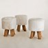 Le tabouret repose-pieds en peau de chèvre et teck brut est un petit siège ethnique, d’une hauteur de 45 cm. Sa finition artisanale allie élégance naturelle du bois et douceur de la peau, avec des teintes blanc et bois naturel.