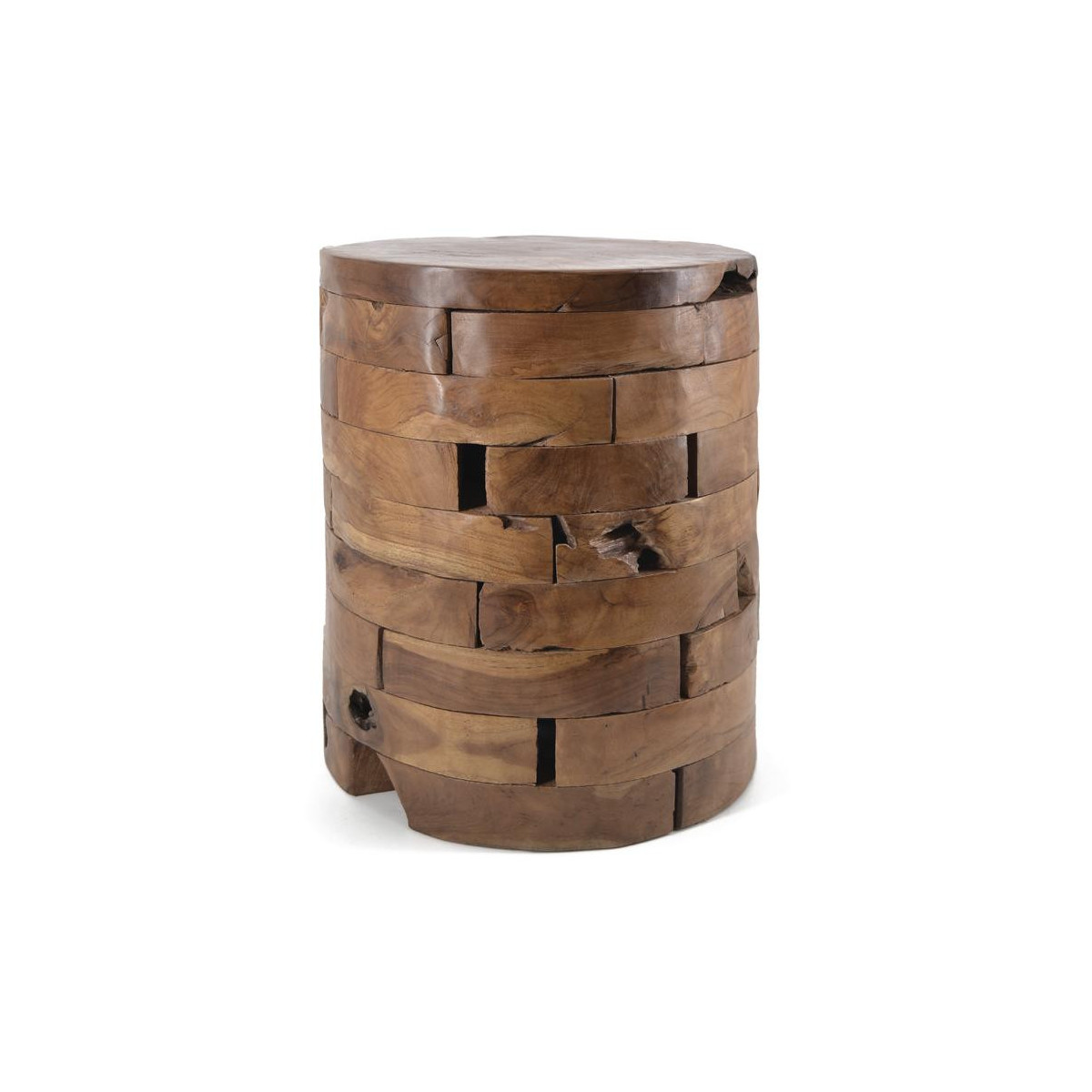 Apporte élégance à n'importe quelle pièce de votre intérieur avec le tabouret en teck de rondins horizontaux. Versatile comme pas deux, il peut être utilisé comme tabouret ou comme table basse.