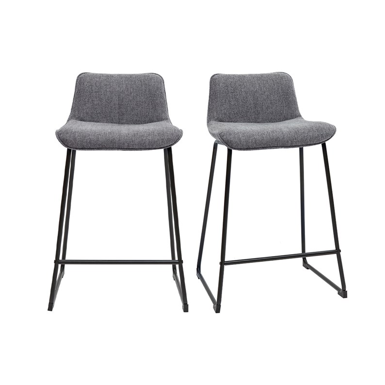 T abourets de bar en tissu effet velours texturé gris et métal H65 BOOST vendus par lot de 2 . Livrés prêts à assembler.
