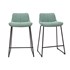 Tabourets de bar en tissu effet velours texturé céladon et métal noir H65 cm BOOST vendus par lot de 2 . Livrés prêts à assembler.