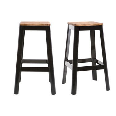 Tabourets de bar industriels en métal noir et bois h75 cm (lot de 2) nick