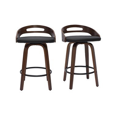 Tabourets de bar design bois foncé et polyuréthane noir 65cm MANO vendus par lot de 2 et livrés prêts à assembler.