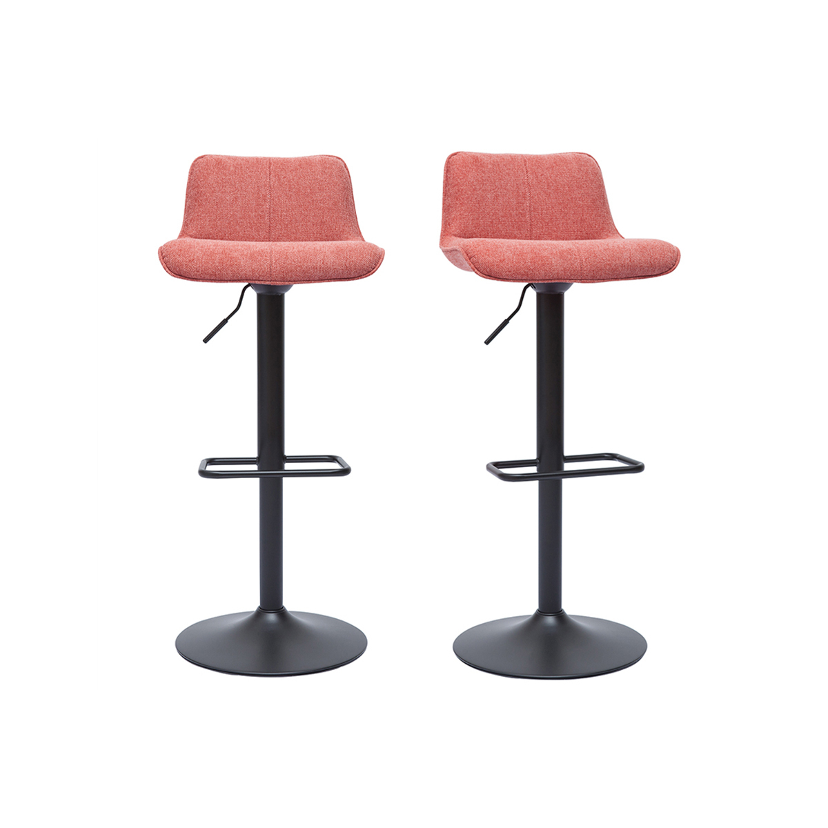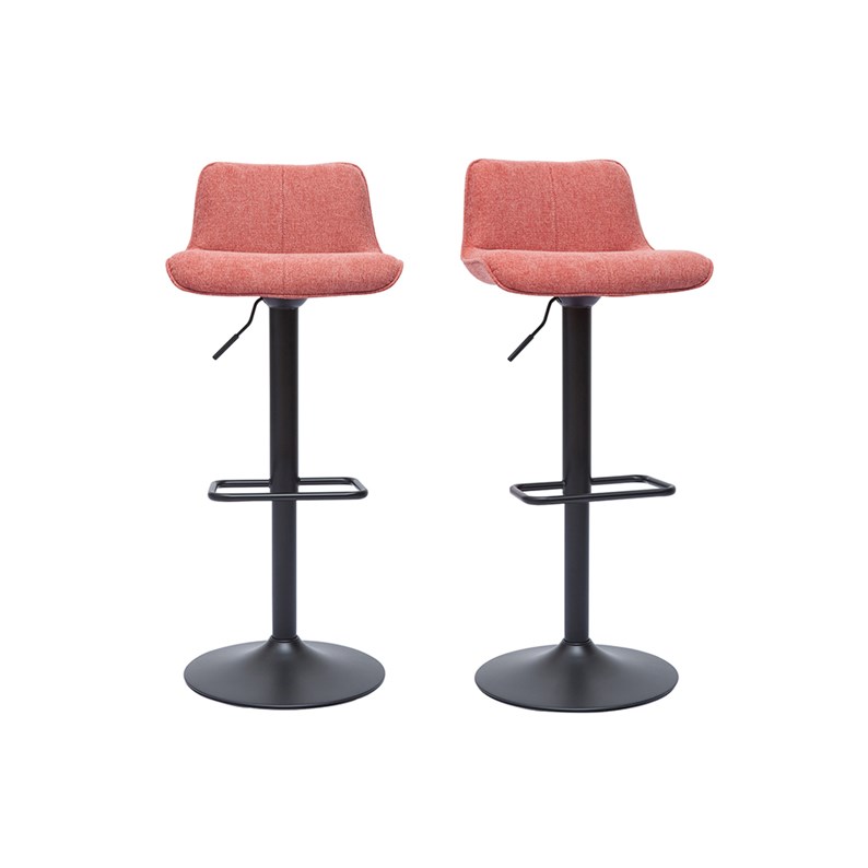 Tabourets de bar relevables en tissu velours texturé terracotta et métal noir vendus par lot de 2 . Livrés prêts à monter.