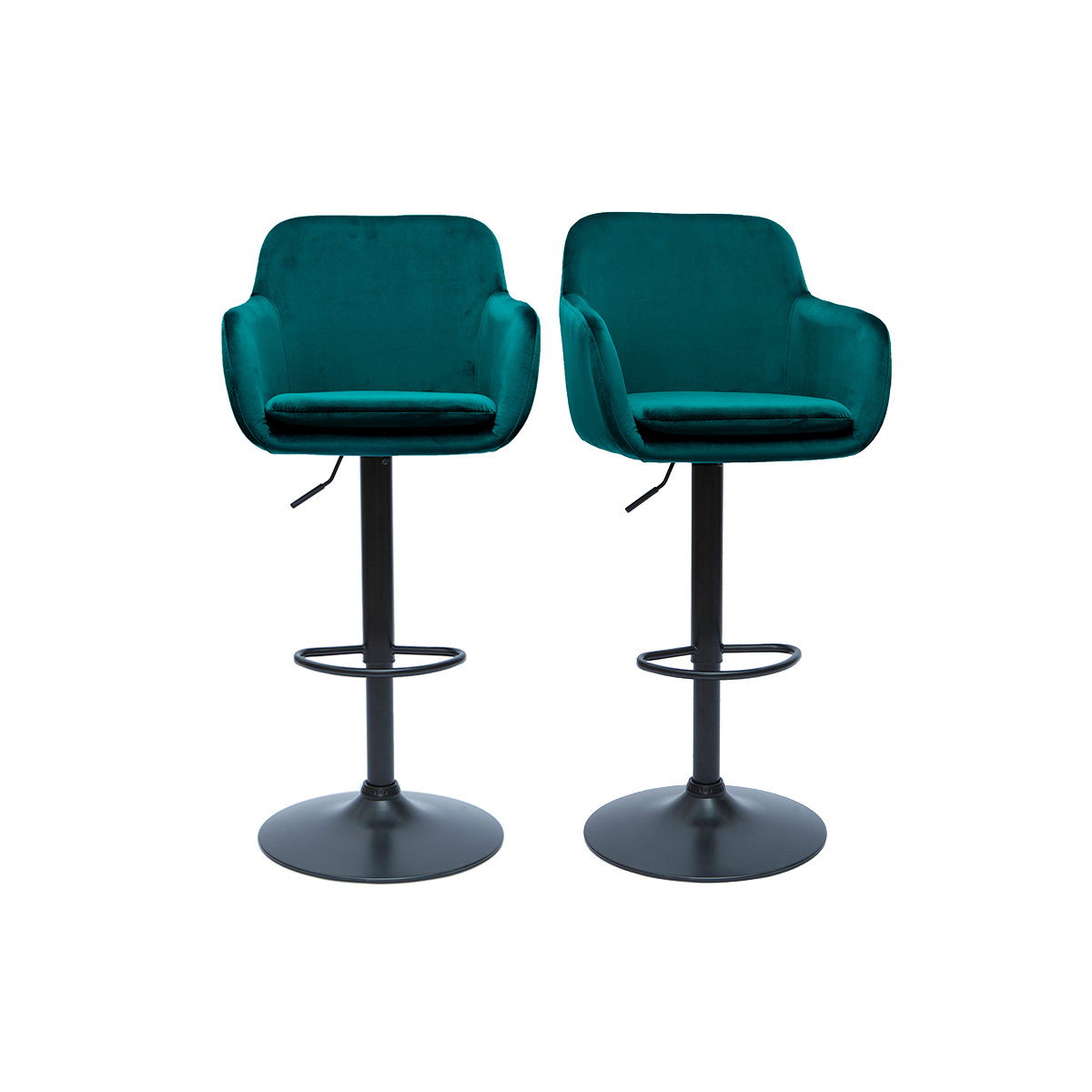 Tabourets de bar réglables en tissu velours bleu pétrole (lot de 2) amika