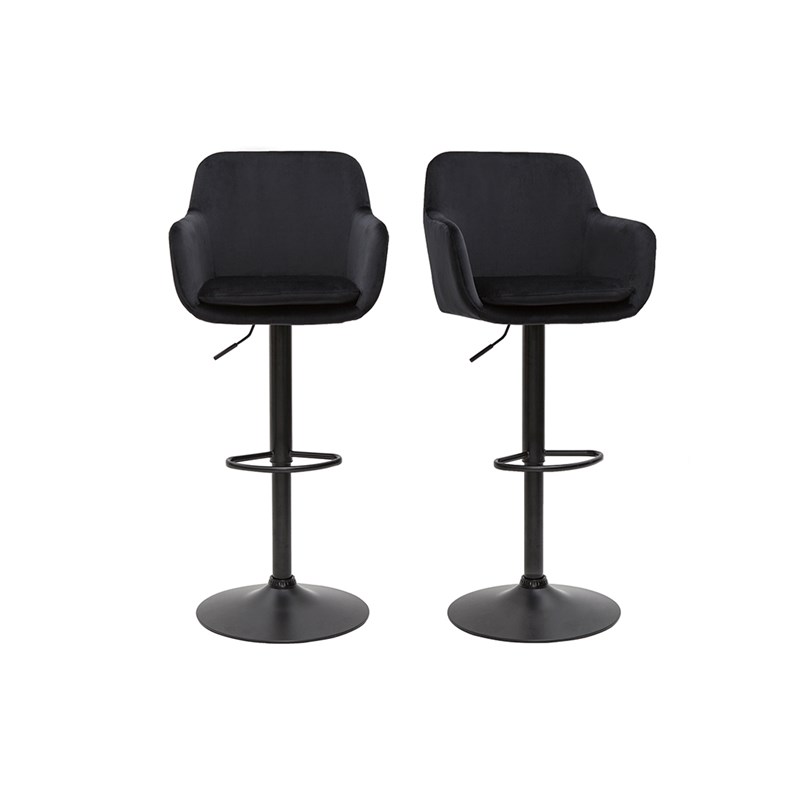 Tabourets de bar réglables en velours noir et métal (lot de 2) amika