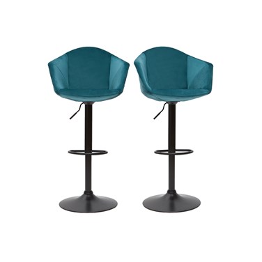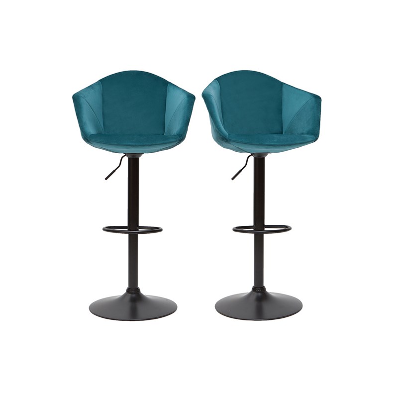 Tabourets de bar réglables pivotants en velours bleu pétrole (lot de 2) taya