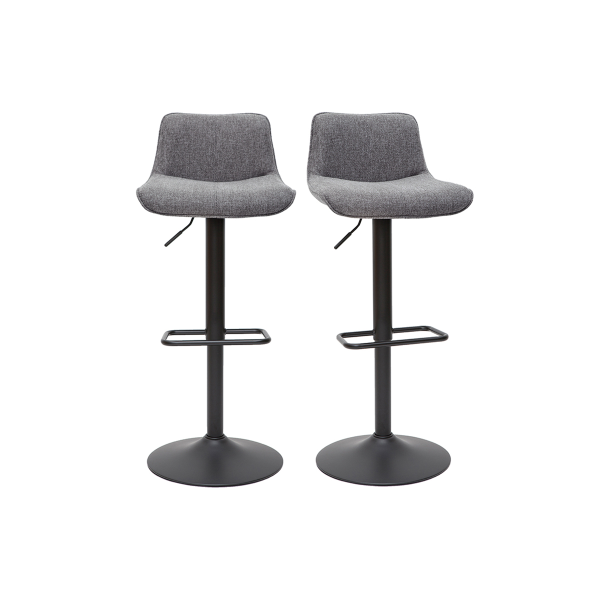 Tabourets de bar relevables en tissu velours texturé gris et métal noir vendus par lot de 2 . Livrés prêts à monter.