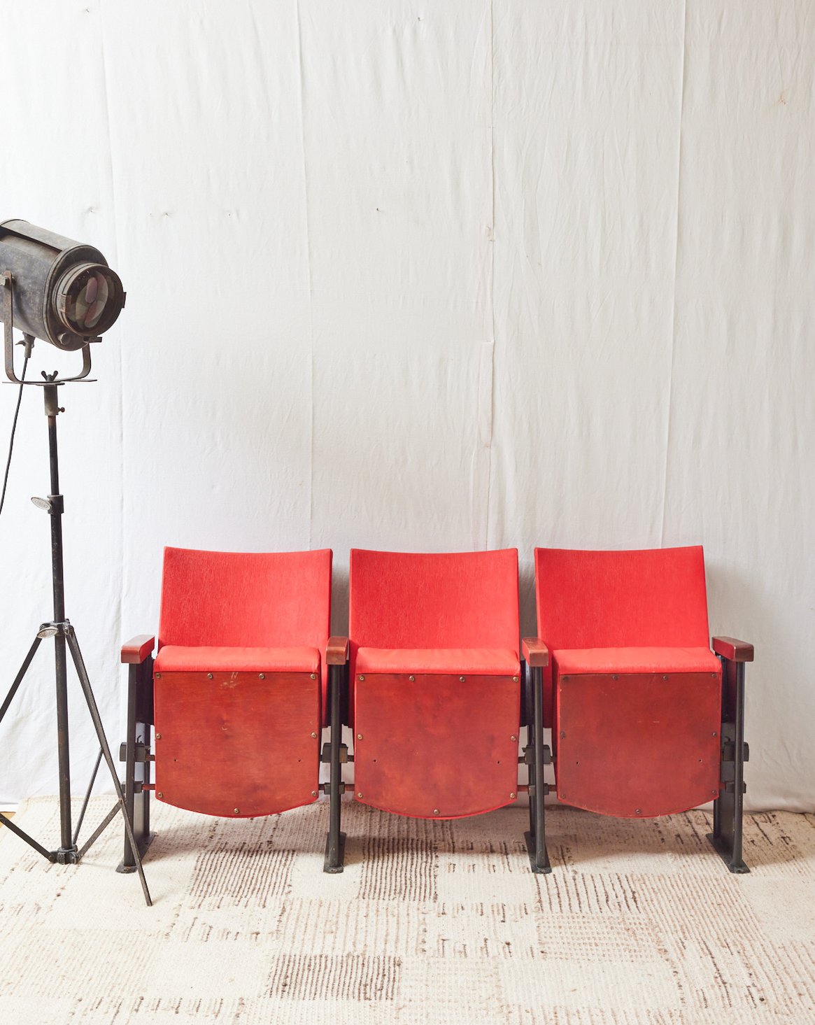 Invitez ce banc de cinéma authentique rétractable à trois sièges, mêlant tissu rouge vibrant, piétement en métal noir et accoudoirs en bois blond. Son assise fédératrice et ses proportions pensées pour s'intégrer dans un salon, une salle de projection ou une entrée apportent une note rétro et conviviale. Le mélange de matières crée un contraste élégant entre la chaleur du bois, la douceur du tissu et le caractère industriel du métal, idéal pour une ambiance cinéphile et accueillante.