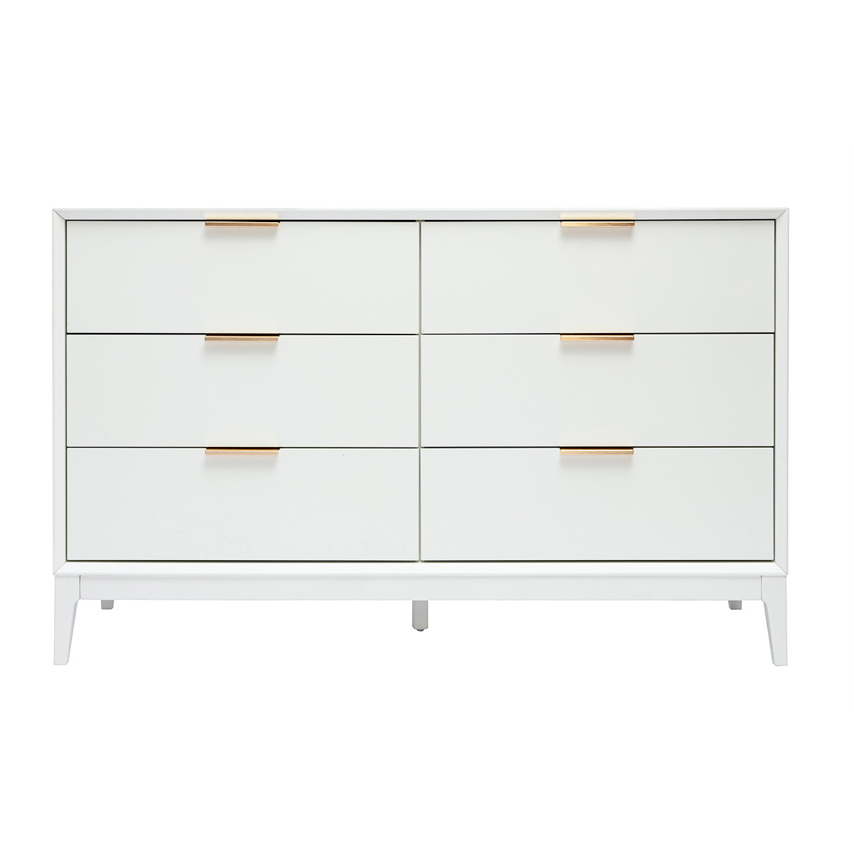 Commode blanche mat et métal doré 6 tiroirs l120 cm giana