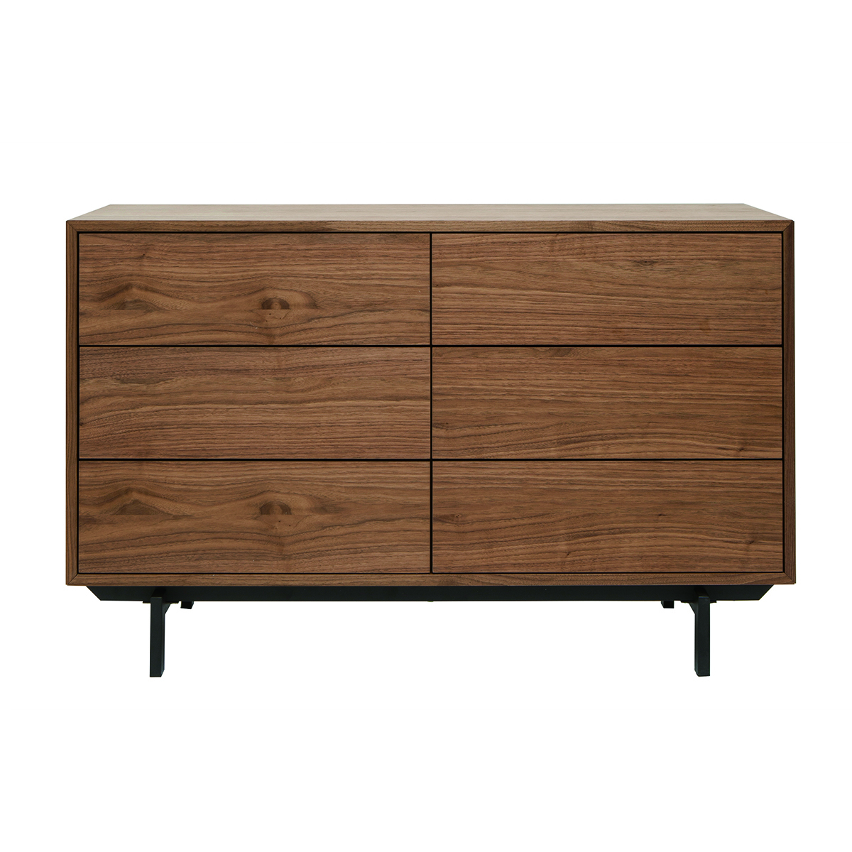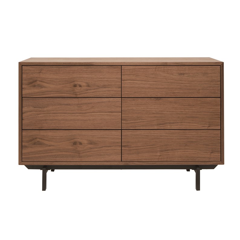 Commode bois foncé noyer et métal noir 6 tiroirs l120 cm manny