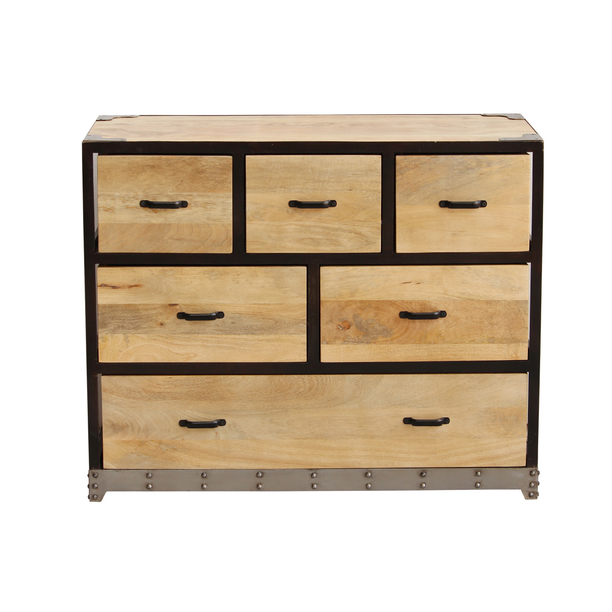 Commode en bois manguier massif et métal noir 6 tiroirs l99 cm industria