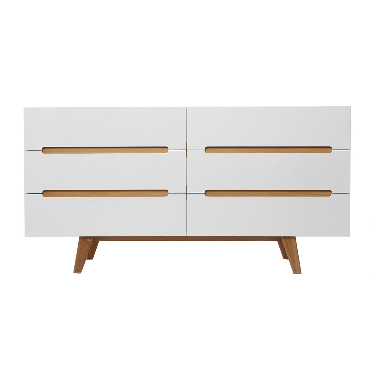 Conçue en panneaux de fibres de bois , cette commode blanche aux détails en bois clair se veut résolument robuste. Elle pourra vous accompagner sur une longue période. Dotée de finitions parfaites, cette commode blanc brillant dispose d'un pietement bois en frêne massif et de découpes également en frêne en guise de poignées. Sans aucun doute vous succomberez au charme de celle ci.