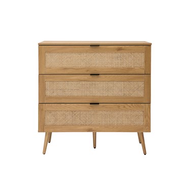 Commode finition bois clair, cannage en rotin 3 tiroirs l100 cm manille