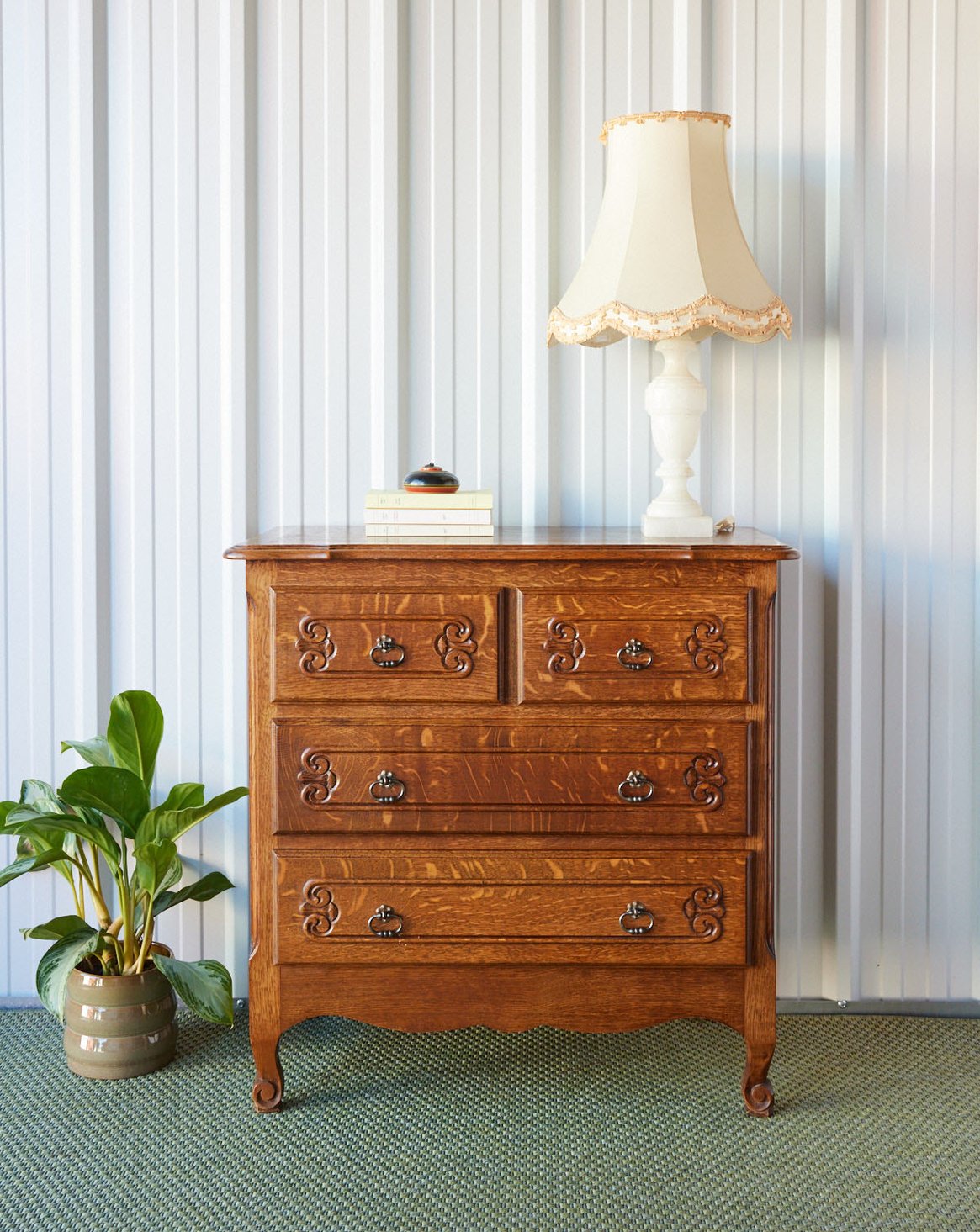 Son nom dit tout : elle est née pour être « commode », remplaçant les coffres profonds où tout s'empilait pêle-mêle. Apparue sous le règne de Louis XIV, elle était un meuble de parade si prestigieux qu'elle trônait souvent dans les chambres de réception plutôt que dans les garde-robes. Elle a introduit le tiroir coulissant, une révolution qui permet enfin d'accéder à ses affaires sans tout vider. Qu’on l’appelle « commode sauteuse » (sur de hauts pieds) ou « commode tombeau », elle se définit par son plateau généreux et sa façade rythmée par deux ou trois rangs de tiroirs.