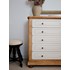Découvrez cette commode cinq tiroirs en bois massif et plaquage, sublimée par des moulures délicates. Sa proportion généreuse offre un rangement structuré, parfait pour organiser linge ou accessoires dans une chambre ou une entrée. Le dialogue entre le chêne apparent et la finition blanche apporte une esthétique sobre et lumineuse, à la fois classique et contemporaine. Sa présence crée une ambiance chaleureuse et élégante.