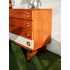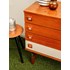Découvrez cette commode vintage scandinave en teck des années 60, au profil équilibré et à l'allure chaleureuse typique du mid-century. Ses quatre tiroirs à poignées ajourées, associés à des pieds en teck et inserts chromés, offrent un rangement fonctionnel et une silhouette légère idéale pour une chambre ou une entrée. Le teck massif et la finition miel apportent une patine naturelle qui installe une ambiance douce et raffinée dans la pièce. Quelques légères traces d'usage et deux petites traces de brûlure sur le plateau.