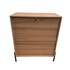 Les lignes épurées de cette commode s'accompagnent d'un subtil jeu de textures : les façades rainurées en bois contrastent élégamment avec la douceur mate du chêne clair. Les poignées rondes dorées, pensées comme de véritables accents décoratifs, ajoutent une touche précieuse à l'ensemble.