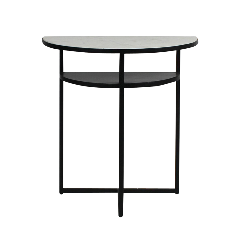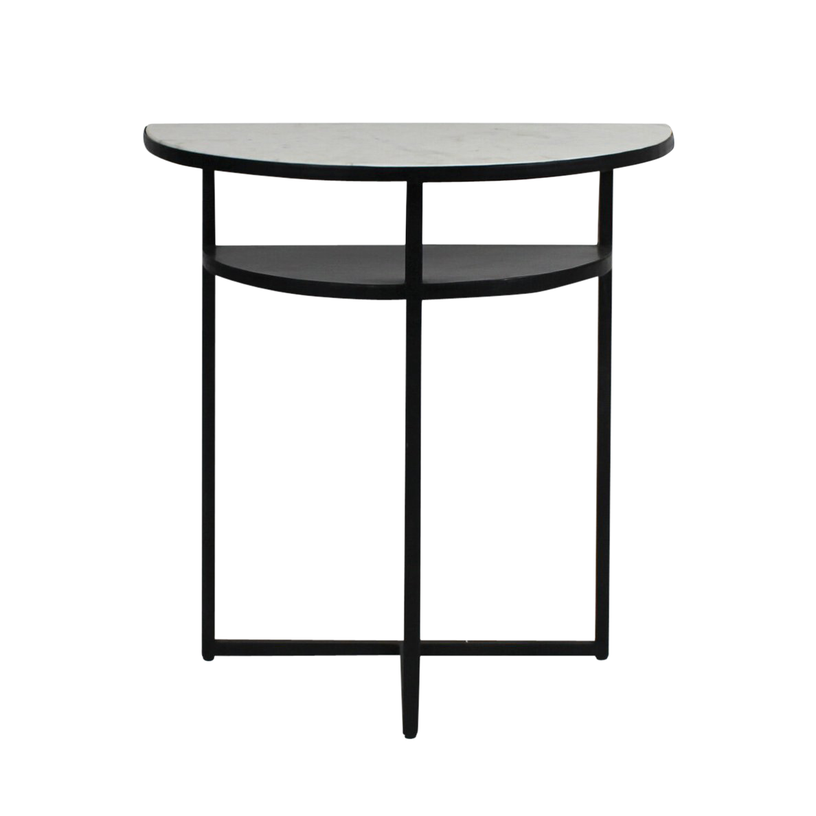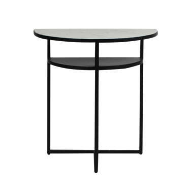 Elle est conçue à partir de deux matériaux de qualité à savoir, le métal et le marbre blanc . Sa structure en métal noir est très marquée et affiche un caractère industriel que l'on aime beaucoup. Elle vous proposera deux plateaux, le plateau principal, en marbre blanc , quant au second, il est en métal et de plus petite taille.