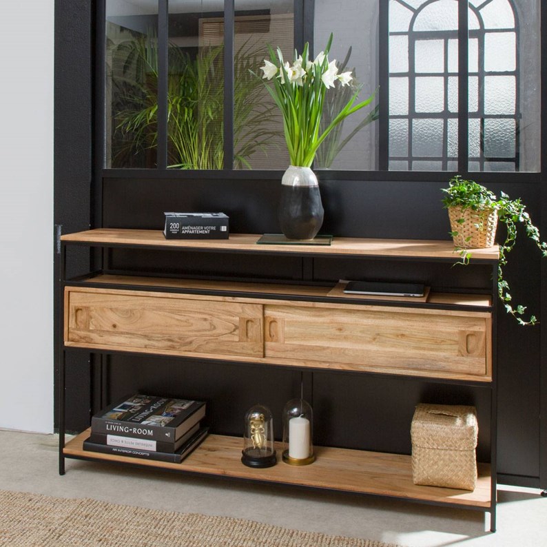 Console en bois d'acacia et métal