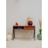 Ajoutez une touche vintage à votre intérieur avec cette console élégante des années 60. Réalisée en teck, elle se distingue par ses pieds en bois noir et sa poignée en laiton légèrement piquée, témoignant de son authenticité. Pratique, elle peut servir à la fois de table d'appoint ou de bureau d'appoint, bien que la hauteur sous le tiroir soit basse. Quelques traces sur le plateau ajoutent du caractère à ce meuble unique, parfait pour les amateurs de décoration rétro. Intérieur du tiroir usé.