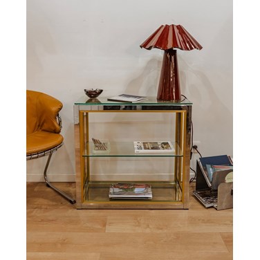 Sublimez votre entrée ou votre séjour avec cette console en verre au liseré doré et à la structure chromée, qui allie légèreté visuelle et élégance discrète. Son plateau supérieur associé à un sous-plateau offre des surfaces de présentation et de rangement pratiques, pensées pour s'intégrer dans un couloir étroit ou derrière un canapé. Le contraste du verre et du filet doré apporte une touche raffinée, idéale pour une décoration contemporaine ou un intérieur plus classique. Son profil compact optimise l'espace sans alourdir la pièce. Quelques traces du temps.