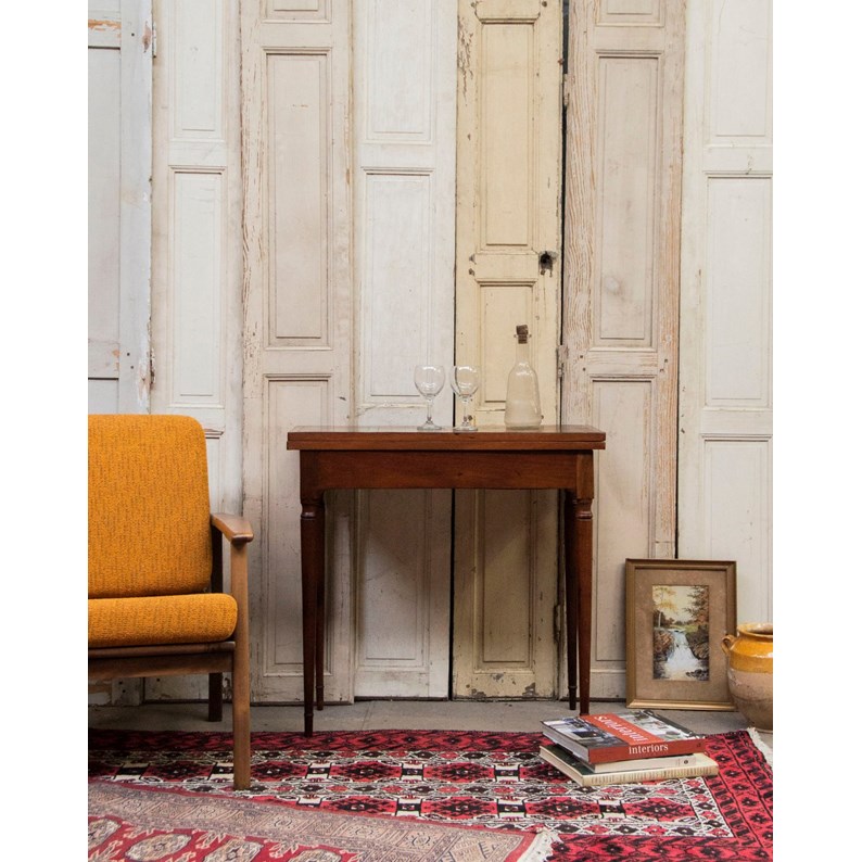 Découvrez cette table de jeux haute aux pieds fuseaux en bois foncé et au plateau damier mêlant essences claires et foncées. Son format compact se déploie en un généreux plateau carré, parfait pour accueillir parties de dames, jeux de société ou pour devenir table d'appoint dans un salon intime. Le contraste des bois et la silhouette élancée lui confèrent une élégance discrète, invitant à des moments conviviaux et à une atmosphère chaleureuse. Usures légères.