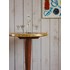 Sublimez votre intérieur avec ce mange-debout en bois exotique à la silhouette haute, où le bois chaleureux se marie au laiton doré pour évoquer un élégant esprit nautique. Sa main courante et son repose-pied en laiton apportent une touche métallique raffinée, idéale pour un coin bar convivial ou une cuisine debout. Les proportions généreuses offrent un point d'appui pratique sans envahir l'espace. Légères traces du temps présentes.