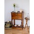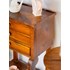 Ajoutez cette table d'appoint en bois foncé aux lignes sobres et chaleureuses à votre intérieur, pensée pour accompagner un salon, une entrée ou une chambre. Ses trois tiroirs munis de poignées en laiton offrent un rangement discret, tandis que le plateau bas accueille livres ou objets décoratifs sans encombrer l'espace. Le mariage du bois profond et du laiton apporte une élégance feutrée qui instaure une ambiance accueillante. Son format compact permet une intégration facile dans des intérieurs contemporains ou plus classiques.