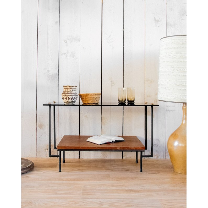 Table d'appoint en bois et verre n°1225