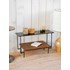 Découvrez cette table d'appoint double plateau associant un plateau supérieur en verre fumé teinté noir et un plateau inférieur en bois foncé, posés sur une structure métallique raffinée. Son design évoque le goût de Georges Frydman, offrant un équilibre graphique qui s'intègre aussi bien dans un salon contemporain qu'en coin lecture pour poser lampe et livres. La combinaison de verre, bois et métal crée une atmosphère contrastée, à la fois sobre et chaleureuse. Quelques micro-rayures et légères traces du temps.