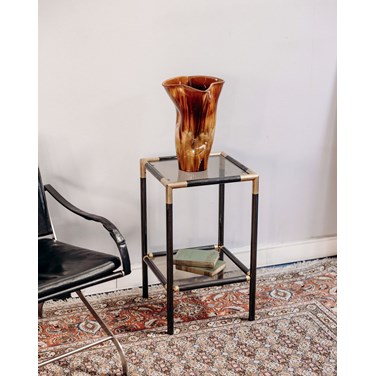 Sublimez votre intérieur avec cette table d'appoint carrée aux finitions noir et doré, structure métallique et deux plateaux en verre qui jouent de transparence et d'élégance. Son format compact et la hauteur étudiée en font une pièce idéale pour une entrée, à côté d'un fauteuil ou comme table de chevet, offrant deux niveaux pratiques pour poser lampes et objets décoratifs. Son graphisme fin apporte une note contemporaine et précieuse. Rayures visibles.