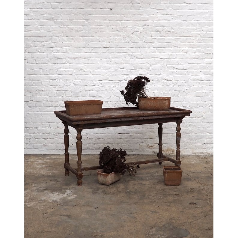 Adoptez cette table de fleuriste ancienne en sapin, au charme authentique et aux lignes robustes. Sa surface généreuse et sa structure stable offrent un espace idéal pour le rempotage, l'assemblage de bouquets ou la mise en scène de vos plantes, tout en s'intégrant naturellement dans un intérieur atelier ou une véranda lumineuse. Le bois de sapin révèle une patine chaleureuse qui éclaire la pièce et invite au geste quotidien.