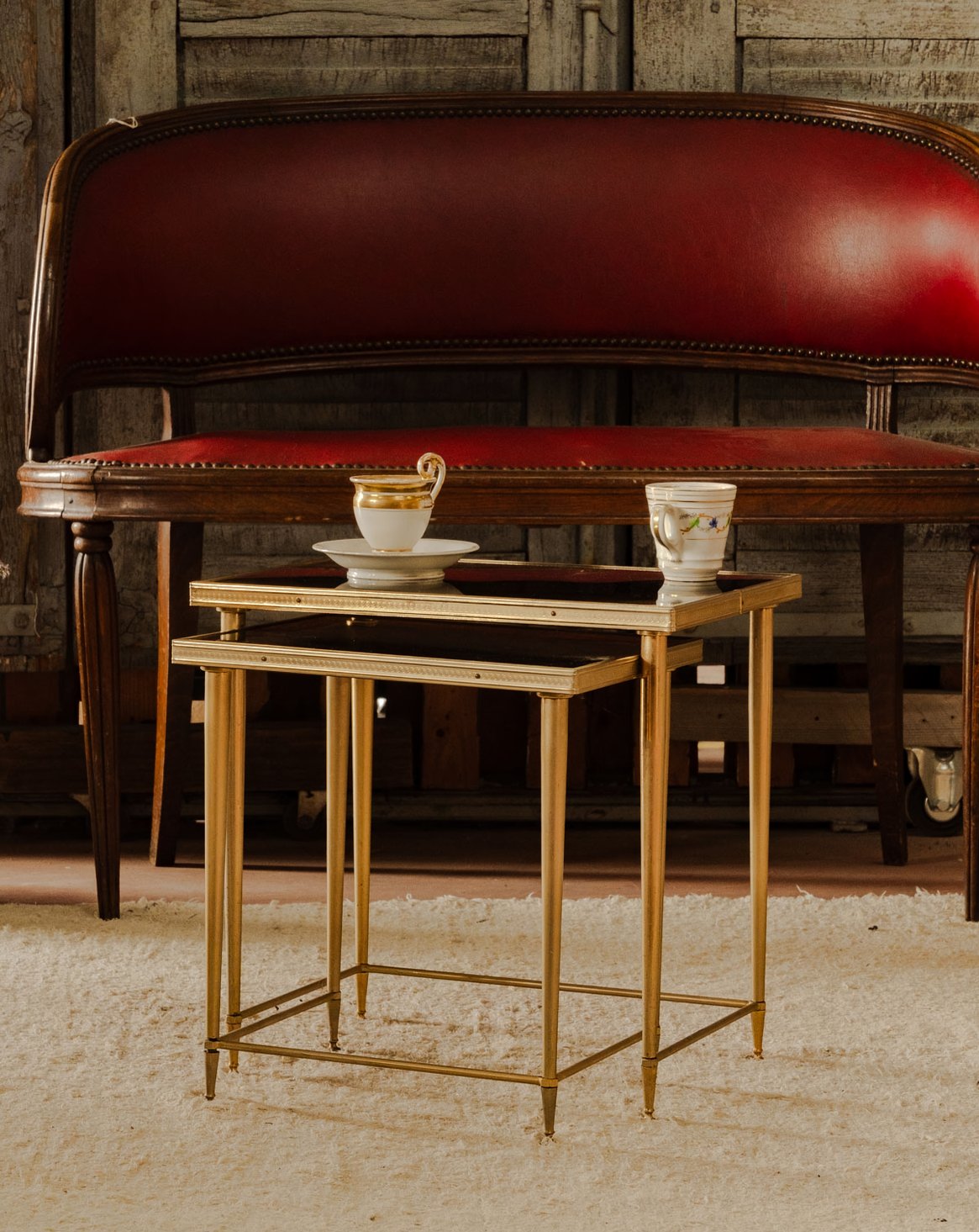 Apportez une touche d'élégance à votre intérieur avec cet ensemble de 2 tables gigogne au design vintage. Les pieds et la structure en laiton ajoutent une note de sophistication, tandis que le dessus en résine noire apporte une modernité subtile. Pratiques et esthétiques, ces tables s'adaptent à tous les espaces, offrant à la fois du style et de la fonctionnalité. Un choix parfait pour créer un coin salon chic et convivial.