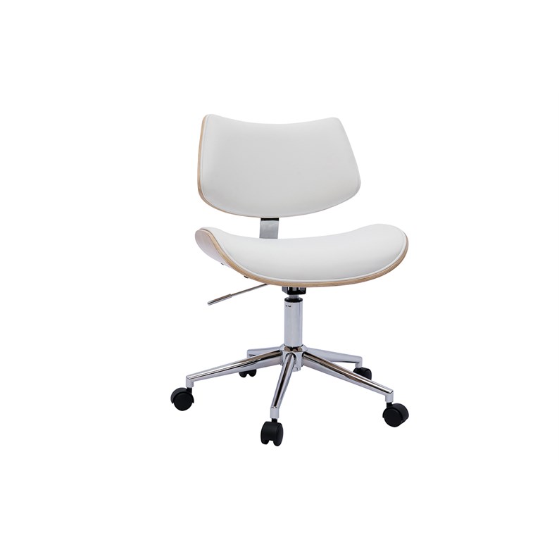 Bien pensée, cette chaise de bureau à roulettes blanc et bois clair avec siège pivotant 360° , se déplace aisément d'une pièce à l'autre et garantit une mobilité appréciable à ses utilisateurs.