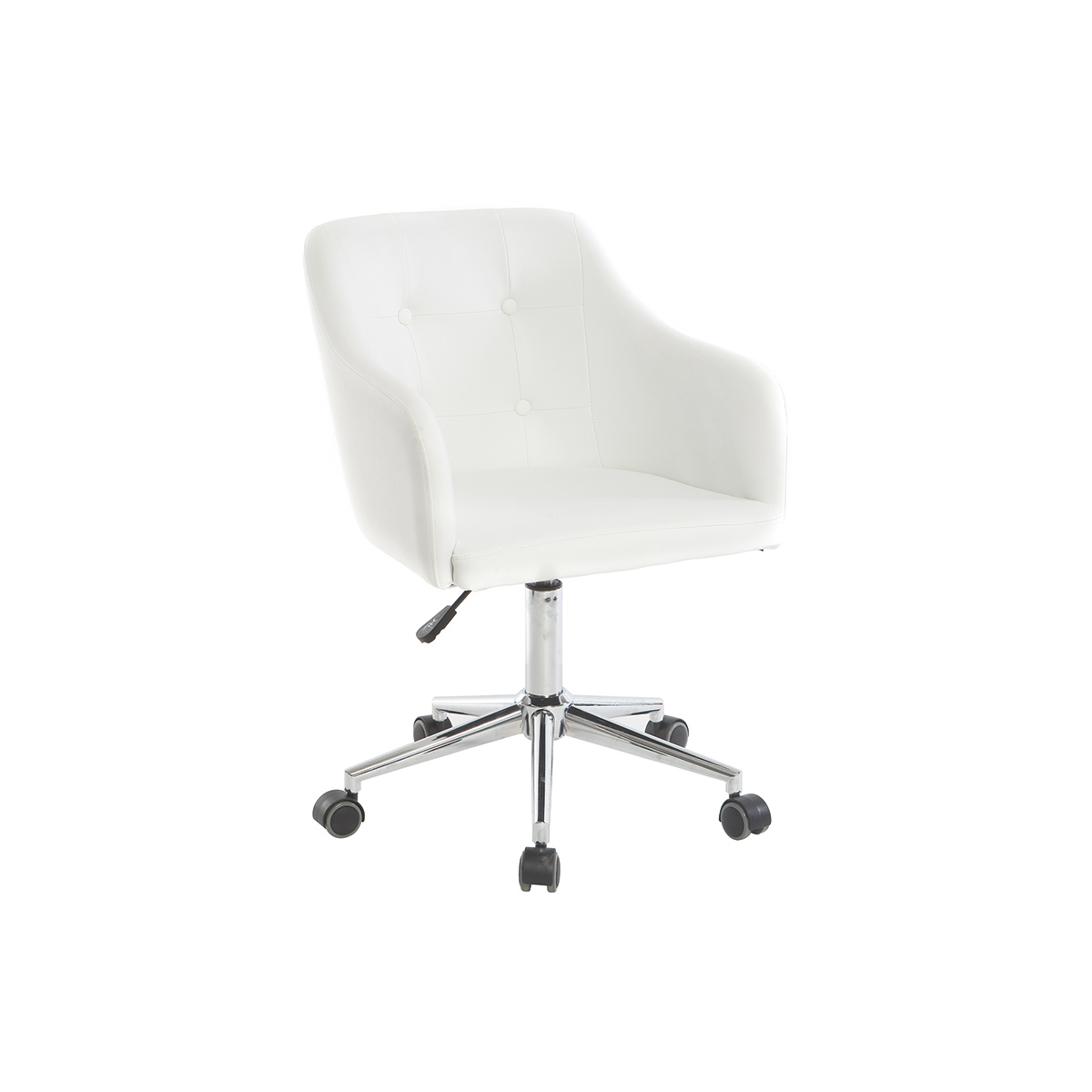 Son piètement en acier chromé associé à un revêtement en polyuréthane blanc fait de cette chaise de bureau un siège moderne et harmonieux. Ses finitions capitonnées lui apportent une touche élégante et raffinée pour un espace de travail plein de charme.