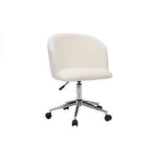 Chaise de bureau à roulettes en tissu effet laine bouclée blanc cassé vanity