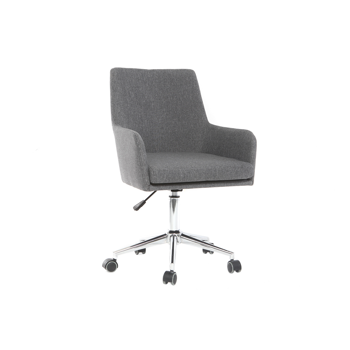 Chaise de bureau à roulettes en tissu gris anthracite et acier chromé shana