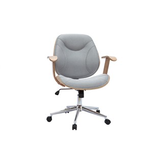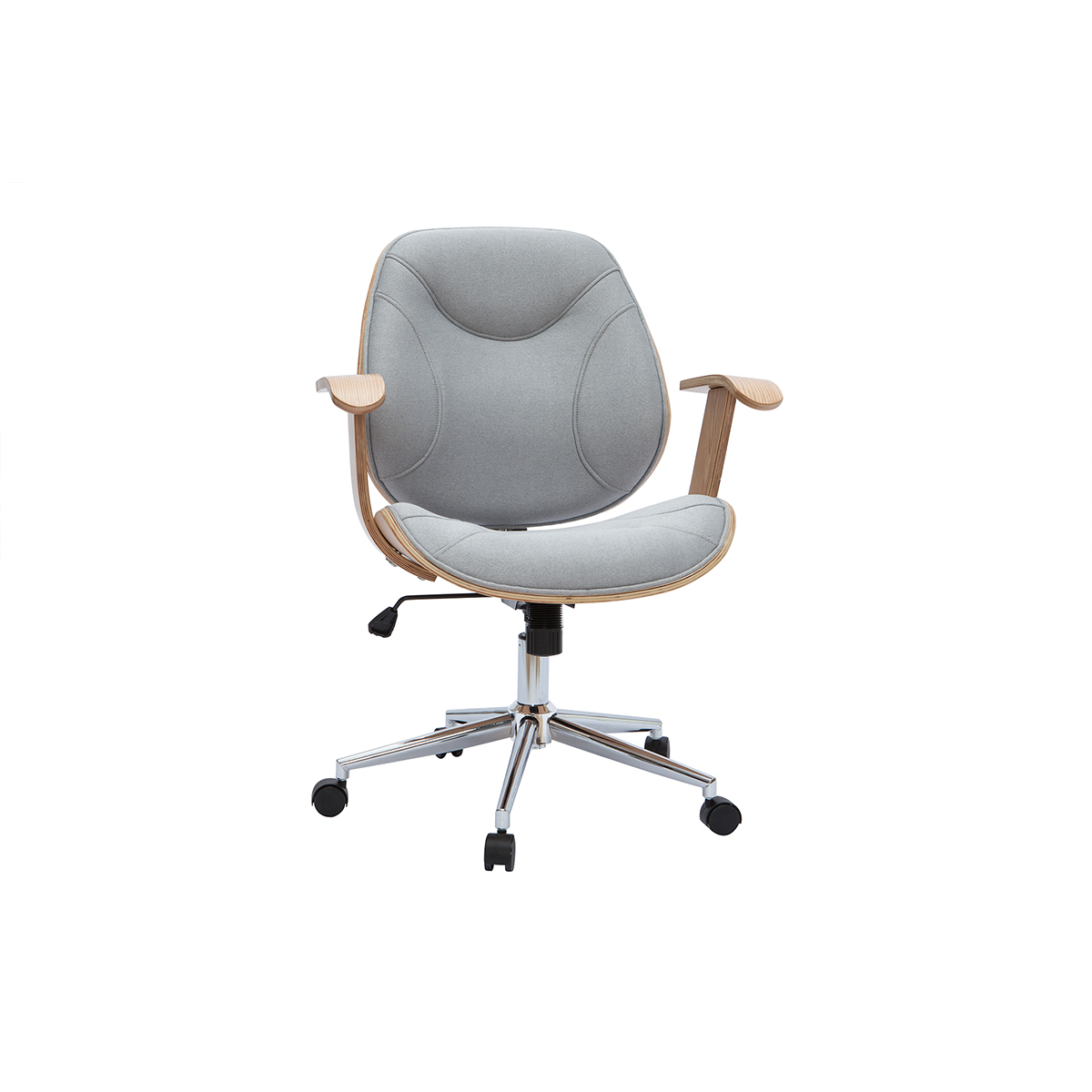 Chaise de bureau à roulettes en tissu gris clair, bois clair yorke