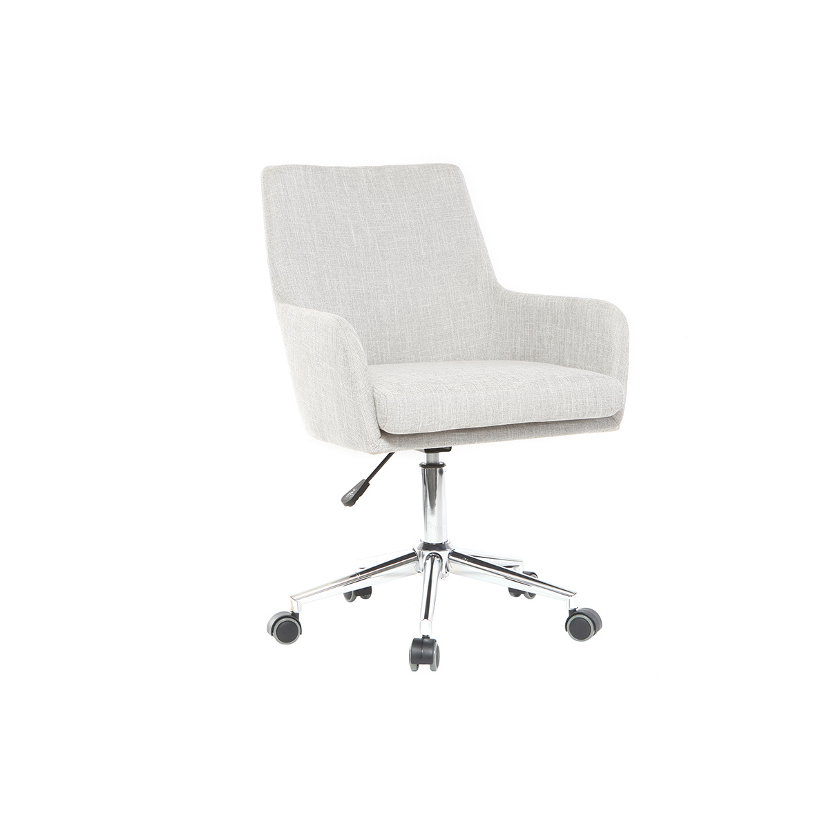 Chaise de bureau à roulettes en tissu gris clair et acier chromé shana