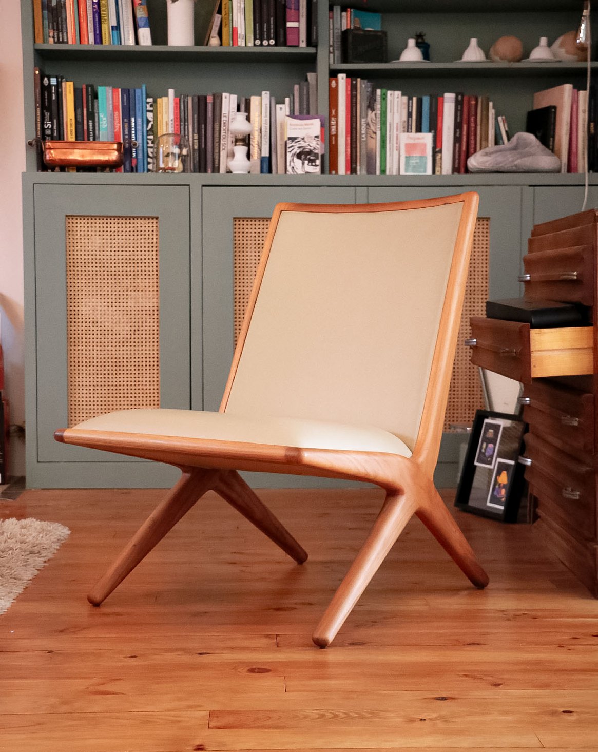 Adoptez la chauffeuse Kaya signée Katia Le Vaillant pour LK Éditions, une création en noyer et cuir beige qui marie la chaleur du bois clair miel à la douceur du cuir. Son assise généreuse et sa profondeur étudiée offrent un confort enveloppant, parfait pour un salon, une chambre ou un coin lecture. Les lignes contemporaines et l'équilibre des proportions instaurent une ambiance apaisée et élégante, révélant un savoir-faire soigné.