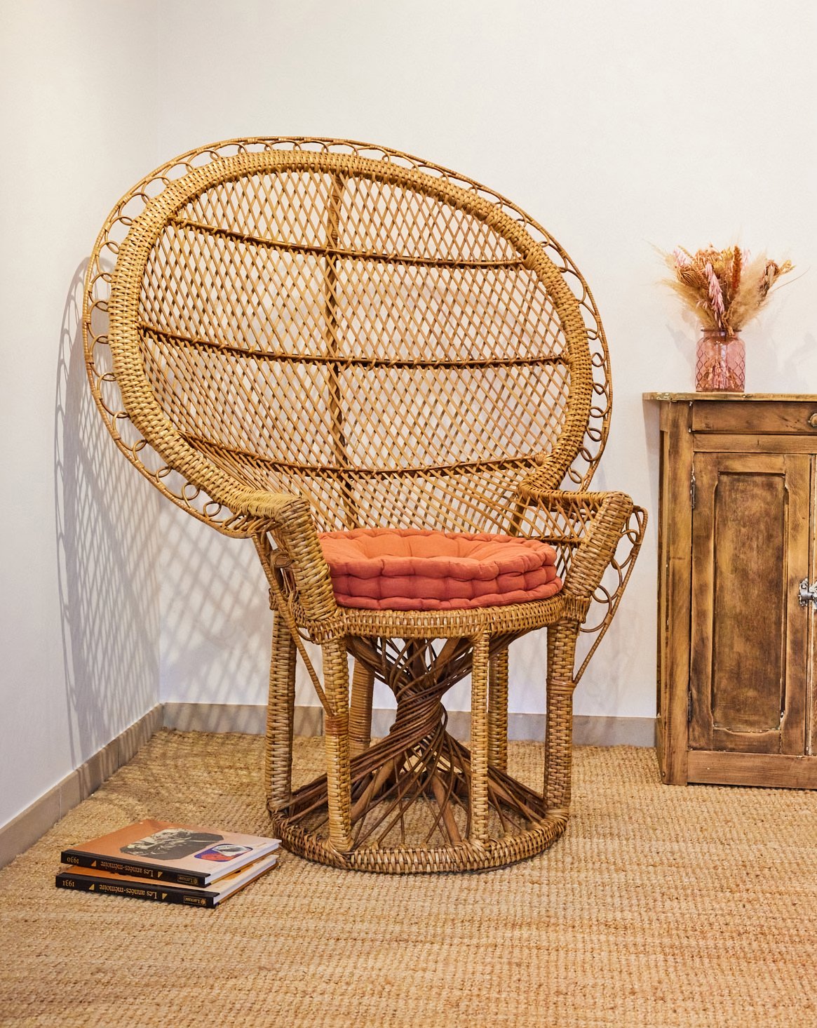Invitez l'iconique fauteuil Emmanuelle, aussi appelé fauteuil Pomaré, à transformer votre intérieur par sa silhouette des années 70 en tige et éclisse de rotin. Son coussin et ses beaux volumes enveloppants offrent une assise confortable, à la fois décontractée et élégante, qui invite à la douceur et à la pause. Sa présence apporte une note sensuelle et exotique, idéale pour créer une atmosphère vintage et naturelle, parfaite dans une chambre ou un salon à l'esprit bohème et rétro.