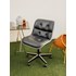 Adoptez ce fauteuil de bureau signé Charles Pollock pour Knoll, version années 80-90 inspirée du modèle de 1963, aux lignes mid-century sobres et élégantes. Sa coque noire rigide, soulignée d'un jonc en aluminium chromé et son cuir capitonné à boutons lui donnent une allure graphique, tandis que le piètement à cinq branches sur roulettes et le réglage en hauteur offrent un confort ferme et une grande adaptabilité pour le bureau, une salle de réunion ou un espace créatif. Quelques légères marques d'usage, dont un discret accroc sur l'assise.