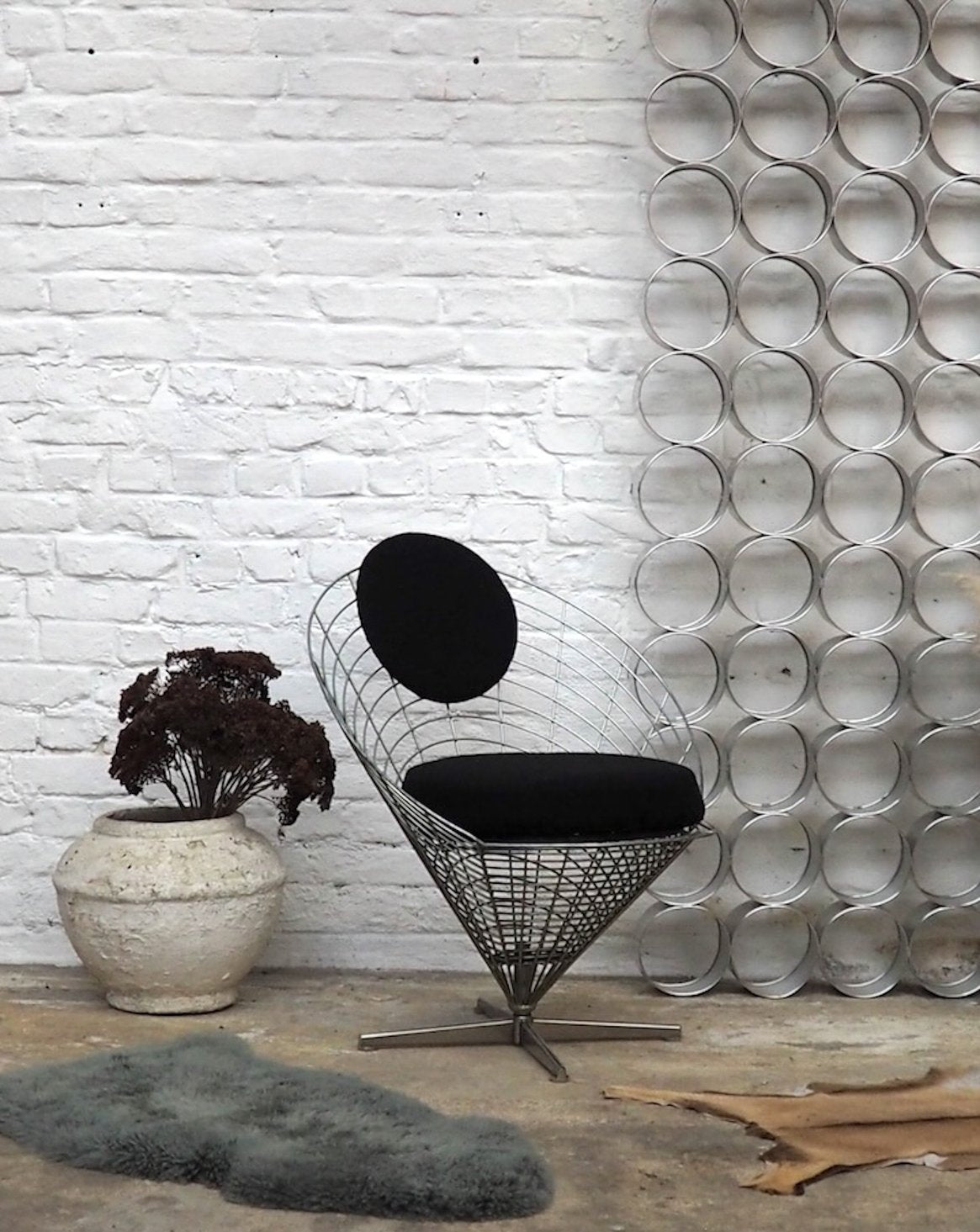 Découvrez le fauteuil Corner Verner Panton, première édition des années 60 au piètement en étoile en métal et à l’assise et au dossier en tissu noir restauré. Sa silhouette sculpturale et ses proportions étudiées offrent un confort immédiat, parfait pour un coin lecture, un bureau atypique ou un salon élégant. Le piètement étoilé et le mécanisme pivotant confèrent une grande fluidité d'usage, tandis que la patine métallique affirme une présence mid-century sobre et inspirante.