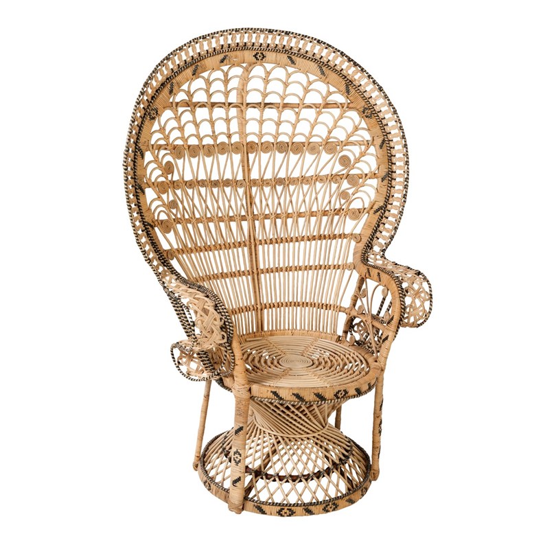 Le fauteuil Emmanuelle de la maison KOK est totalement réalisé en rotin.