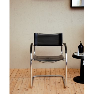 Adoptez ce fauteuil contemporain en métal chromé et simili cuir noir, aux lignes épurées et à l'allure graphique qui s'intègre aussi bien dans un salon moderne qu'un bureau élégant. L'assise accueillante et les accoudoirs recouverts de simili cuir offrent un confort immédiat, tandis que le piètement chromé apporte une note lumineuse et raffinée à la pièce. Profil compact mais généreux à l'usage.