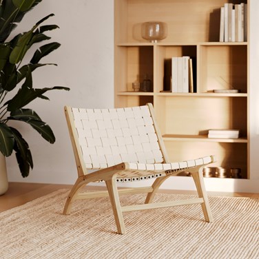 Fauteuil en teck et cuir tressé blanc - kuna