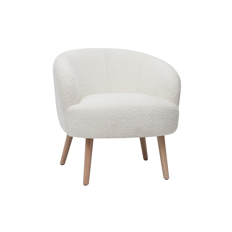 Fauteuil en tissu effet laine bouclée blanc cassé et bois clair maggie