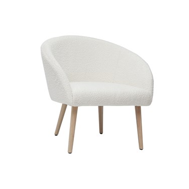 Fauteuil en tissu effet laine bouclée blanc cassé et bois clair olivia
