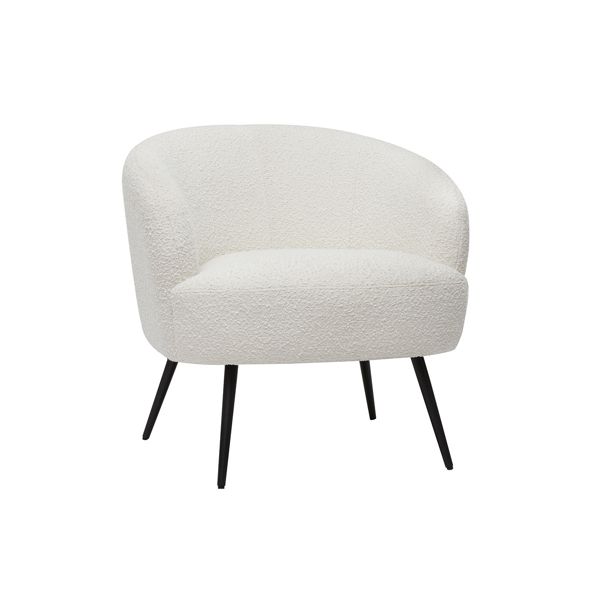 Fauteuil en tissu effet laine bouclée blanc cassé et métal noir maggie