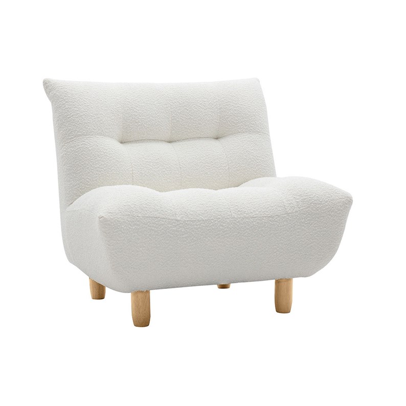 Fauteuil en tissu effet laine bouclée blanc et bois clair yumi